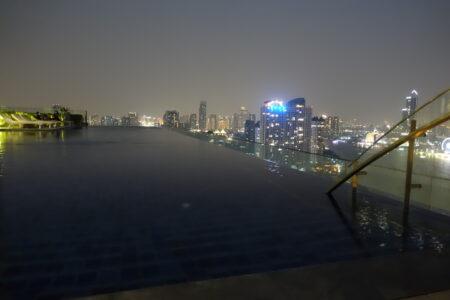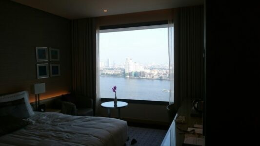 Der Hinflug nach Bangkok mit Qatar Airways verläuft total problemlos und eigentlich auch recht angenehm und komfortabel, auch der Zwischenaufenthalt in Doha ist rasch hinter sich gebracht. Hier erstaunt einen jedoch das Gewusel, selbst um 24:00 ist der Flughafen proppenvoll und die Flieger starten und landen im Minutentakt, ein Nachflugverbot ist hier wohl eher unbekannt. Angenehm ist deswegen, dass extra Ruheräumen mit bequemen Liegen eingerichtet wurden – streng getrennt nach Geschlechtern und mit Milchglasscheiben vor Blicken geschützt. So kommen wir beide zum ersten Nickerchen, dass dann im Weiterflug nach Bangkok im nagelneuen A380 mehr schlecht als recht fortgesetzt werden kann.In Bangkok selbst kommen wir in einem wirklich schönen Hotel direkt am Fluss unter, die Anreise gestaltet sich mit Bahn, Skytrain und Boot zwar etwas aufwändig, aber dafür kann man schon einen guten Eindruck von der Stadt bekommen.