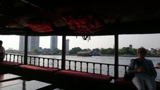 Am nächsten Morgen brechen wir dann nicht allzu früh mit der Schnellfähre auf zum Bahnhof und können weitere Einblicke auf die Stadt gewinnen. Überhaupt ist es in Bangkok sehr angenehm, dass so viel über den Fluß erreicht werden kann – so ist eine kostengünstige Sightseeingtour gleich dabei, man muss nur aufpassen, dass man beim eigentlichen Stopp schnell vom Boot hopst, da der Kapitän nur ganz kurz anlandet.