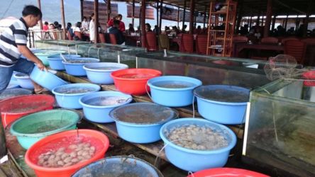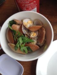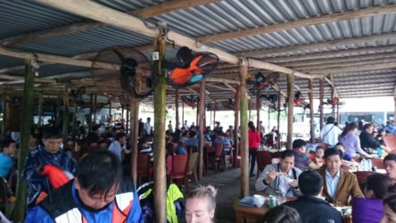 Kurz bevor die Passstraße beginnt, liegt am Fußes des Berges bei dem Ort Lang Co eine Lagune mit mehreren Sea Food Restaurants. In einer der einfach aussehenden Barracken wird uns ein unfassbar gutes Mahl kredenzt! Selbst Jan, der sonst jegliches Getier aus dem Meer mit Ekel betrachtet, kann hierbei nicht anders, als auch die verschiedenen Muschelarten zu probieren. Das Essen dort ist so unglaublich lecker und frisch – ich würde auf der Stelle wieder hinfahren und weiteressen! Positiver Nebeneffekt unseres Festmahls: Inzwischen hatte es aufgehört zu regnen, unsere schmückende Regenbekleidung behielten wir aber vorsichtshalber weiterhin an…