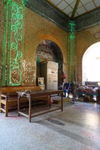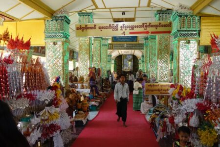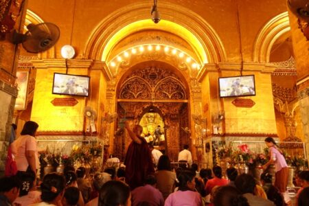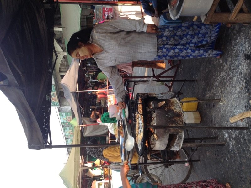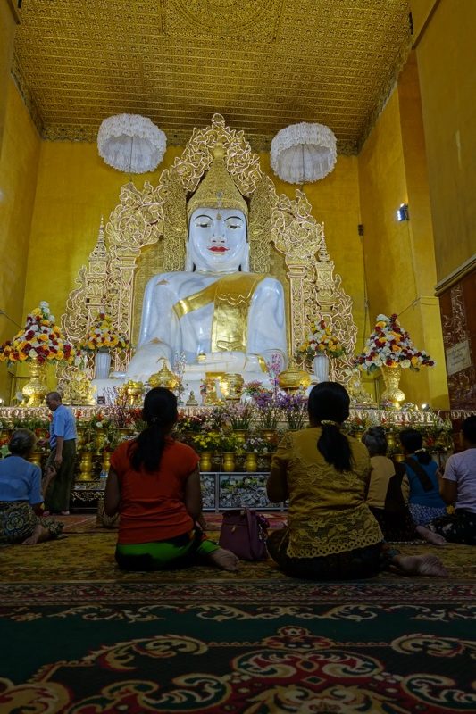 Beim Nutella-Frühstück lernen wir ein Italienisch-Schweizer Pärchen kennen und verbringen danach den Tag gemeinsam: Wir buchen bei der Rezeption eine Halbtagstour mit einem Taxi. Unser junger Fahrer Ali entpuppt sich leider schnell als unmotivierter Trickser: Durch den ersten Stopp, die Mahamuni-Pagode mit der anscheinend wichtigsten Buddha-Statue Myanmars, scheucht er uns noch im Eiltempo durch. Beim zweiten Stopp treten wir dann aber entschieden auf die Bremse, was er merklich uncool fand.