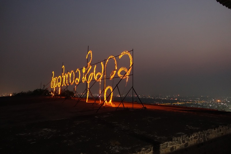 Zum Sonnenuntergang kraxeln wir, wie vom Reiseführer empfohlen, auf den Mandalay Hill. Wir kommen gerade rechtzeitig, um die Sonne in einer Dunst- und Staubwolke verschwinden zu sehen – Romantik pur…
