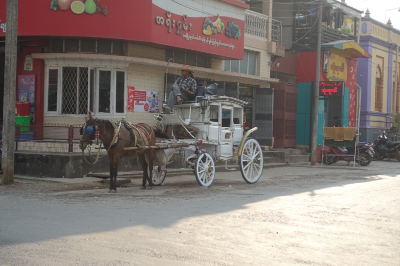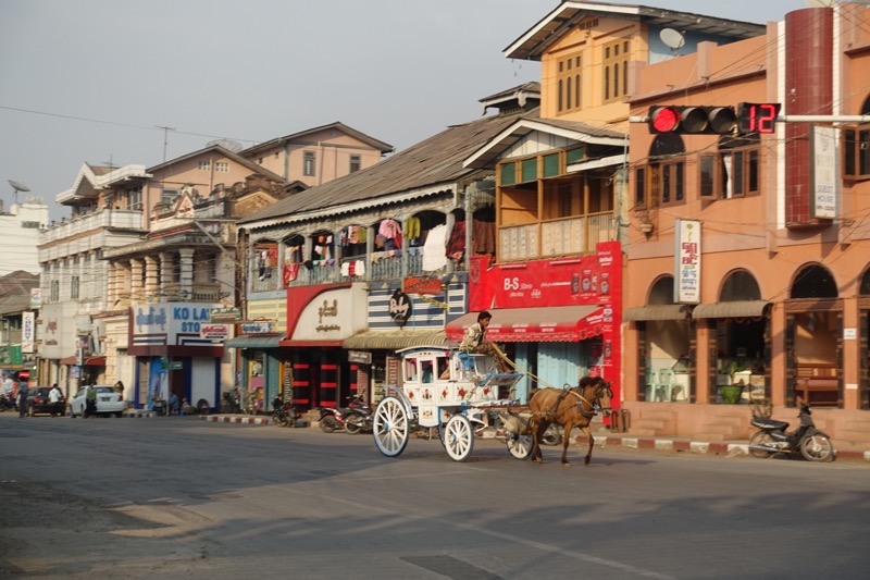 Erst auf der Fahrt zum Bahnhof am nächsten Morgen realisieren wir so richtig, dass auf dem Gelände hinter unsrer alten und charmanten Unterkunft ein riesiger, moderner Militärstützpunkt der burmesischen Armee betrieben wird. Hier werden heute die Elitetruppen ausgebildet. Was ein architektonischer und atmosphärischer Kontrast! In unserer Unterkunft und in weiten Teilen des Ortes fühlten wir uns wie aus der Zeit gefallen.