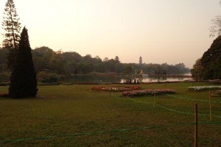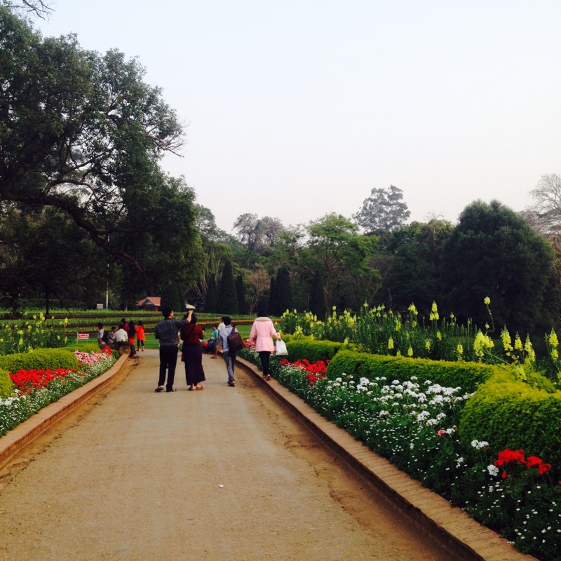 Mittags fahren wir mit einem Taxi auf der vielbefahrene Burma Road (Brummirennstrecke mit vielen Haarnadelkurven), die die Hauptverkehrsader ins Nachbarland China ist, nach Pyin Oo Lwin – die Sommerfrische der englischen Kolonialverwaltung. Dort angekommen, atmen wir erst einmal durch – das Klima ist kühler, die Luft klarer und die Atmosphäre nicht so hektisch, beengt und dreckig wie in Mandalay. Der weitläufige Ort ist übersät mit Überresten der Kolonialherrschaft: es gibt schöne Villen, einen Golfplatz und einen weitläufigen Botanischen Garten mit großen Bäumen – ganz wie in einem typischen Kurort in England.