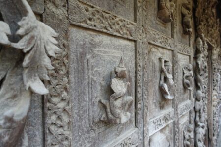 Das Gebäude selbst besteht komplett aus Holz und beeindruckt durch seine reichen Schnitzereien.