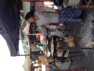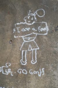 In Mandalay kommen wir in einem netten, frisch eröffneten Hostel unter. Das Personal ist äußerst bemüht und der Besitzer in unserem Alter holt sich von uns Rückmeldung zu Plänen ein, die er für sein Hostel hat. Eine Entscheidung von ihm war auf jeden Fall goldrichtig – es gibt Nutella zum Frühstück! Herrlich zu beobachten, wie uns Westlern allen ein verklärtes Lächeln im Gesicht steht, während wir unseren Toast mit geschätzten 3 cm süßer Haselnuss-Paste beschmieren.Die Verklärung verlässt unser Gesicht jedoch beim Anblick der Zimmer… Die Einrichtung erinnert Mechthild an die Ukraine. Wir haben zwar den Luxus eines Zimmers mit Fenster, aber dieses bietet nur Ausblick zur 10 cm entfernten Außenwand des Nachbarhauses und lässt sich auch nicht öffnen. Es ist für uns immer wieder erstaunlich zu sehen, dass die Bausubstanz selbst bei neuen Gebäuden (und auch in höherpreisigen Hotels) sehr minderwertig ist. Armaturen, Fugen und andere Baustoffe, die teils neu oder nur wenig alt sind, sehen schon nach kürzester Zeit total in die Jahre gekommen aus. Schade, da so selbst nett eingerichtete Unterkünfte bei genauerem Blick recht heruntergekommen aussehen!
