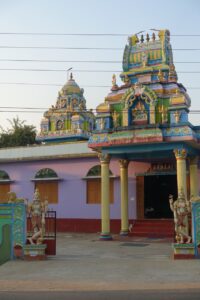 Der Blick aus dem Fenster unseres Zimmers ist recht schön – man schaut auf den farbenfrohen Hindu-Tempel auf der gegenüberliegenden Straßenseite und sieht in der Ferne auch einige goldenen Pagoden.